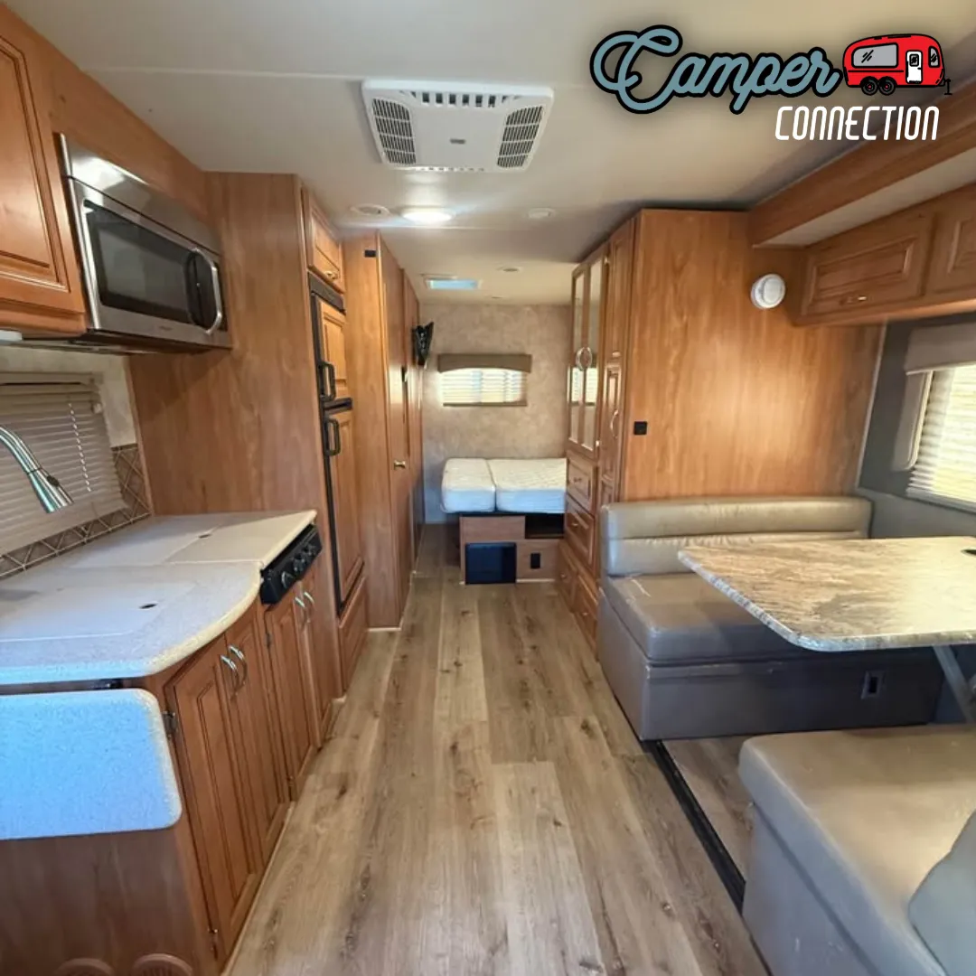 Dinette will also make into a bed and queen size bed to the back,